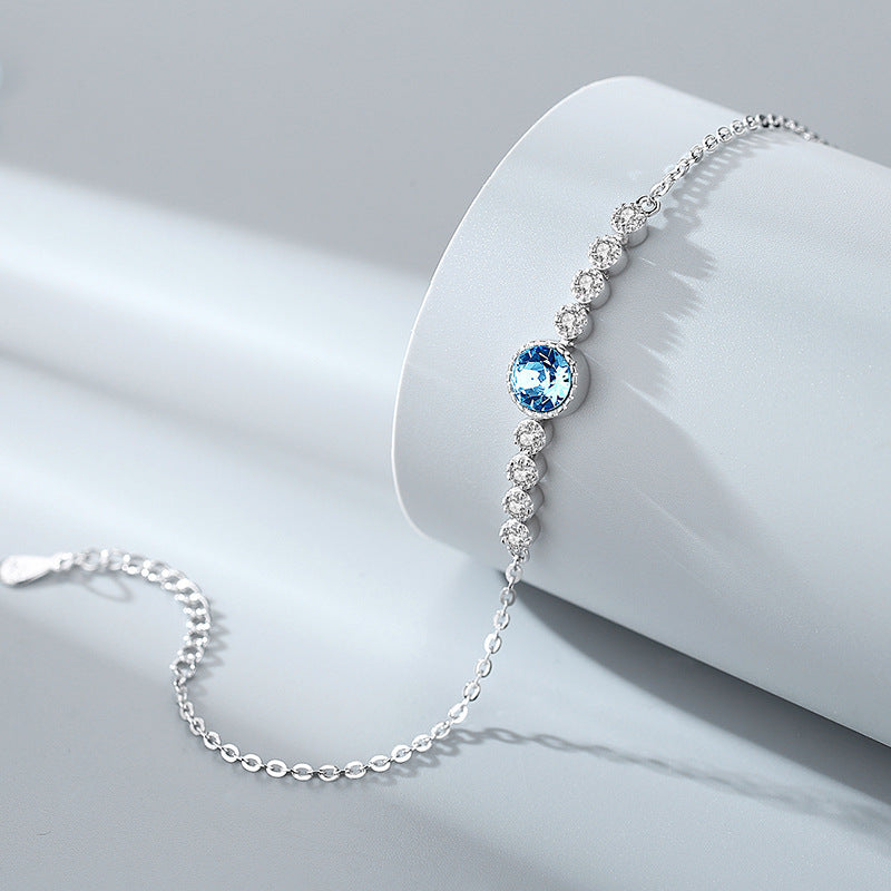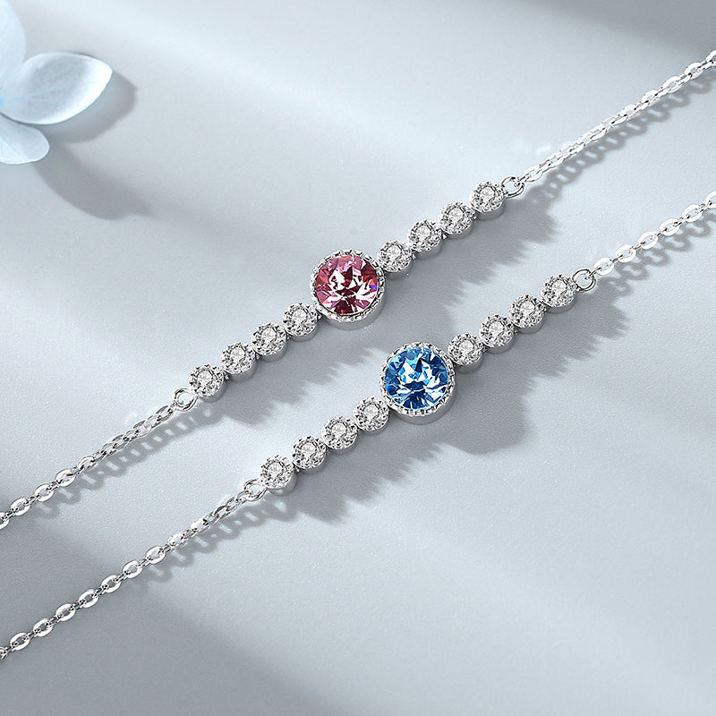 Das Ocean Heart Bracelet verzaubert mit seiner klaren, modernen Eleganz. Ein funkelnder Zirkonia in leuchtendem Blau oder zartem Rosa steht im Mittelpunkt und symbolisiert Reinheit, Tiefe und Liebe. Eingefasst in feinstes 925er Sterling Silber, verleiht dieses Armband jedem Look eine luxuriöse, feminine Note.